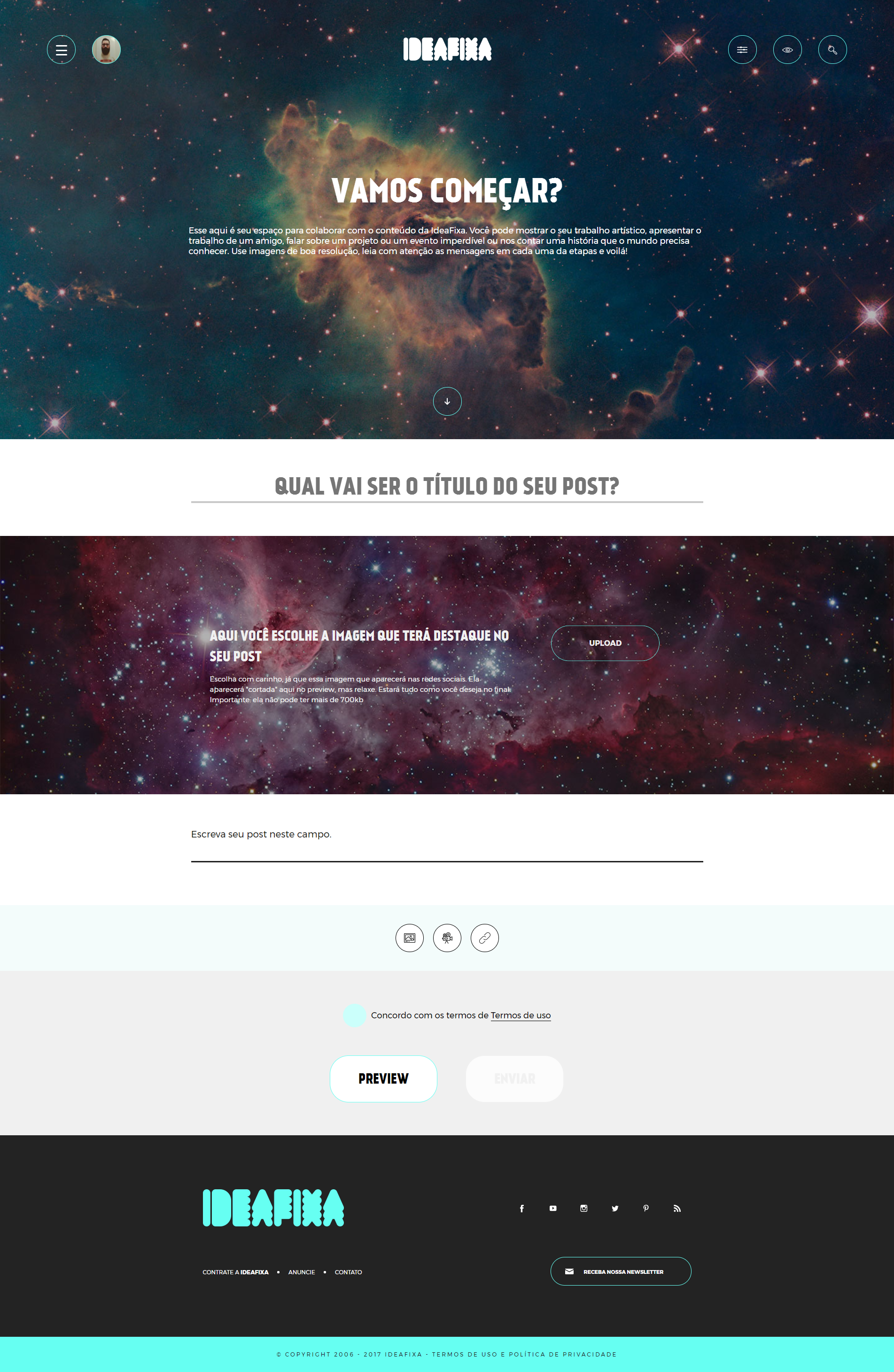 O conceito partiu do fato que a maioria do público-alvo tinha o portal IdeaFixa como uma referência para ideias e inspirações para trabalhos, curadorias e curiosidades artísticas. A decisão foi facilitar o layout e a interface para que o usuário pudesse ter uma visão maior de outros conteúdos que estavam no ar, sem necessariamente ser o que estava buscando.